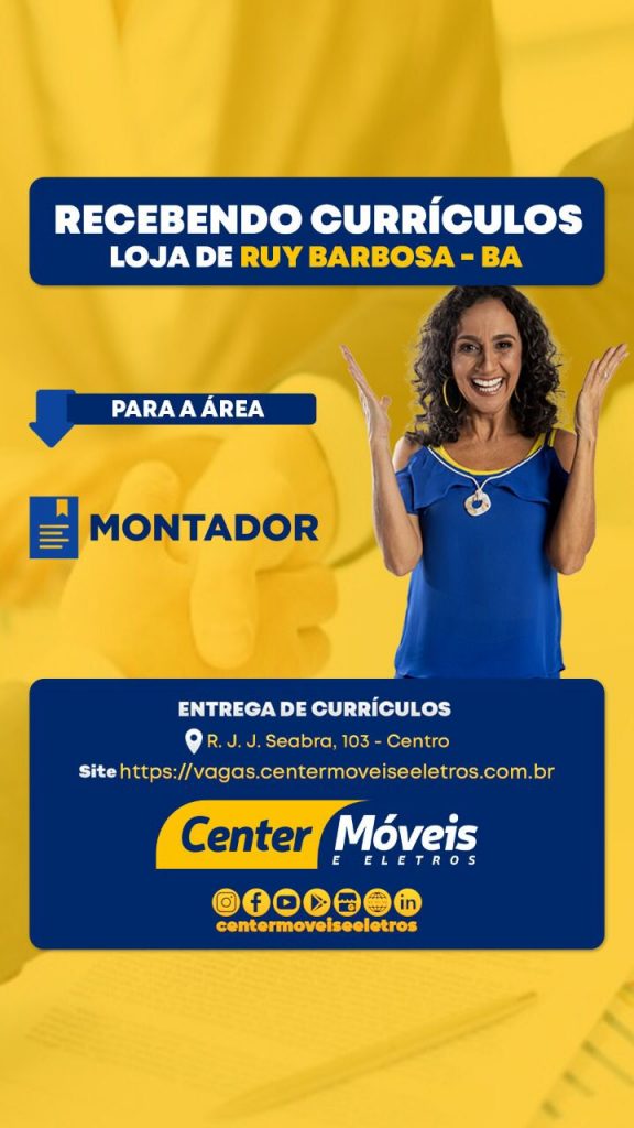 Os interessados devem entregar currículo na loja Center moveis localizada na rua J.J Seabra, 103, no Centro de Ruy Barbosa ou se cadastrar pelo site da empresa, clicando aqui.