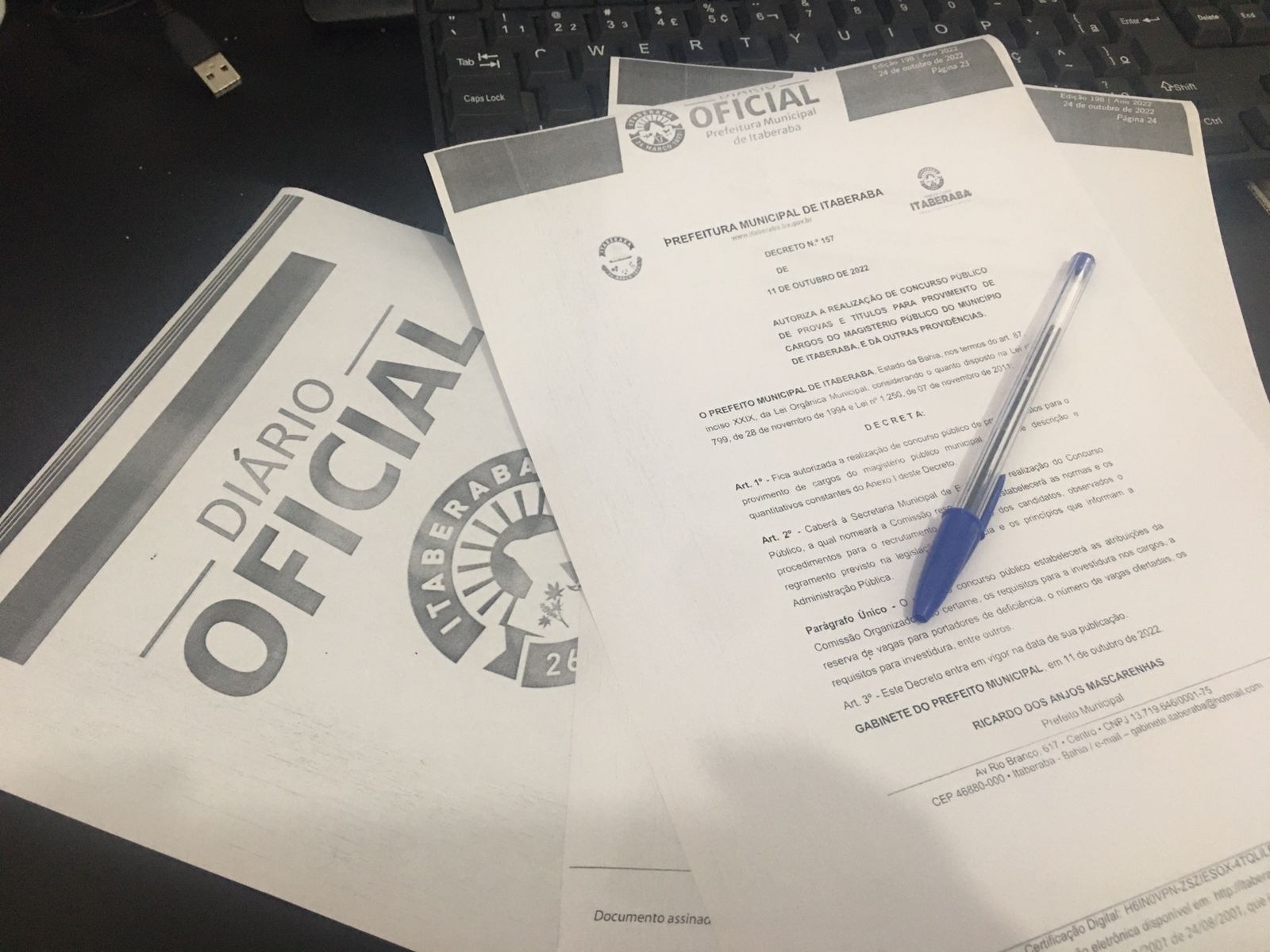 A Prefeitura de Itaberaba, divulgou, nesta segunda-feira (24) através do Diário Oficial, a Autorização para realização de um novo Concurso Publico Municipal para provimento de cargos do Magistério.
